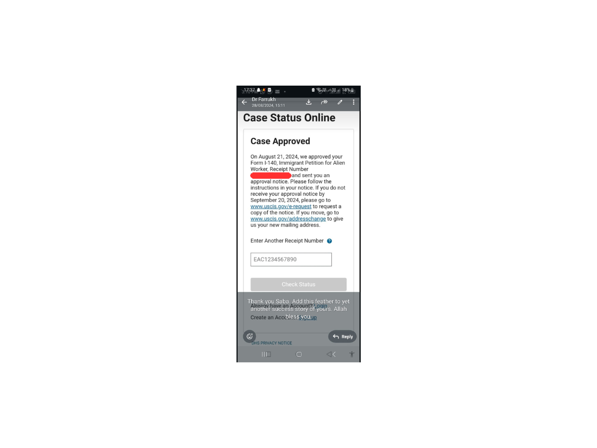 Moving to the U.S. as a psychologist had been my dream for years. I had tried multiple consultants before, and even after one attempt, my petition was denied. When I decided to work with GVE, their research analysts and entire team carefully reviewed my case, identified the gaps, and fixed the issues that were holding it back—particularly the lack of alignment between my endeavors and my expertise, and the unclear presentation of national importance. Thanks to their strategic guidance, attention to detail, and dedicated support, my I-140 petition was finally approved. I am extremely grateful to GVE for turning a challenging situation into a successful outcome and making my dream a reality.